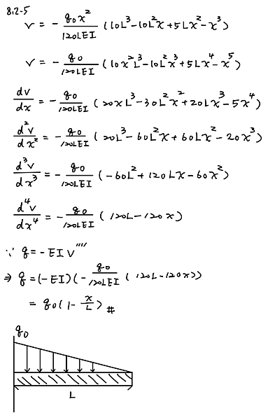 The deflection curve for a cantilever beam AB (see figure) is given by the following equation: upsilon (x) = - w_0 x^2/360L^2EI (45L^4 - 40 L^3x + 15 L^2x^2 - x^4)